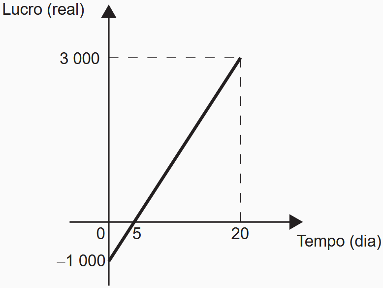 A representação algébrica do lucro (L) em função do tempo (t) é