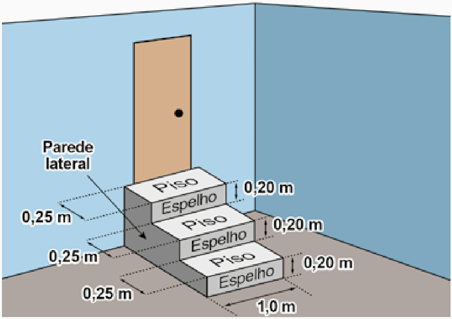 A figura representa uma escada com três degraus, construída em concreto maciço, com suas medidas especificadas.