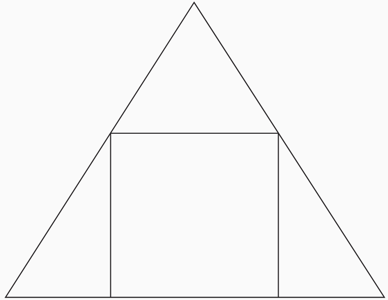 Os alunos do curso de matemática de uma universidade desejam fazer uma placa de formatura, no formato de um triângulo equilátero, em que os seus nomes aparecerão dentro de uma região quadrada, inscrita na placa, conforme a figura.