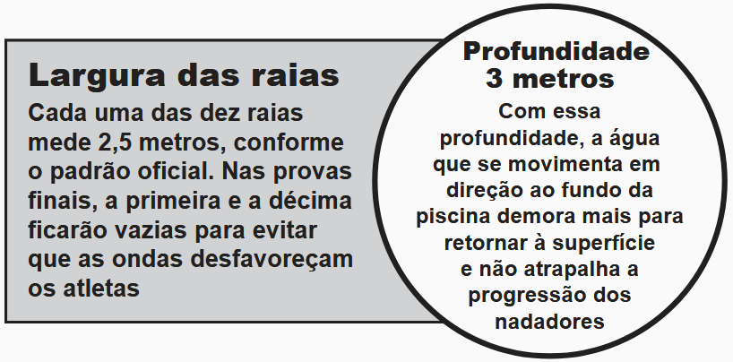 Para a Olimpíada de 2012, a piscina principal do Centro Aquático de Londres, medindo 50 metros de comprimento, foi remodelada para ajudar os atletas a melhorar suas marcas. Observe duas das melhorias: